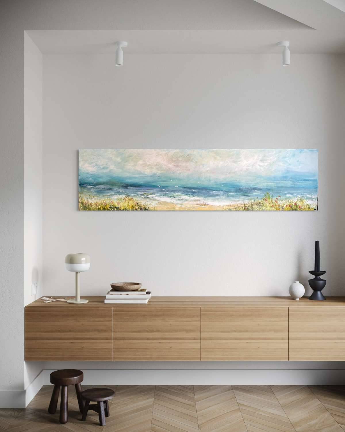Previous Next Archive Previous Next The First Kiss Painting Acrylic on canvas 42 x 152 x 3.8 cms (16.54 x 59.84 x 1.50 ins) Ref: 728113 Enquire about this item Share: